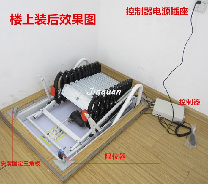 閣樓伸縮樓梯主要是用于家閣樓樓梯或是復(fù)式房中的第二層。使用時(shí)可以從頂層拉下,一真到地板,它的最下面有兩腳,當(dāng)然拉到地板時(shí),它的兩腳會穩(wěn)穩(wěn)的立在地板上,這樣在使用時(shí)就不會出現(xiàn)滑動(dòng)的現(xiàn)像,更安全。